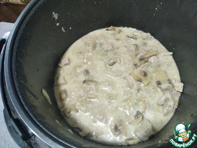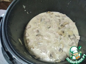 Добавляем в чашу воду, сметану, специи и грибы- Режим "Тушение" 40 минут.