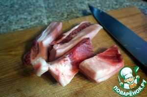Мясо порезать кусками – так, чтобы легко проходили в жерло мясорубки.