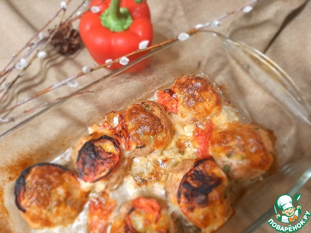 Запечённые очень сочные и пышные куриные котлеты, вкус которых дополняют мини шарики расплавленной моцареллы и помидорки черри. Такие котлеты можно и на праздничный стол подать.