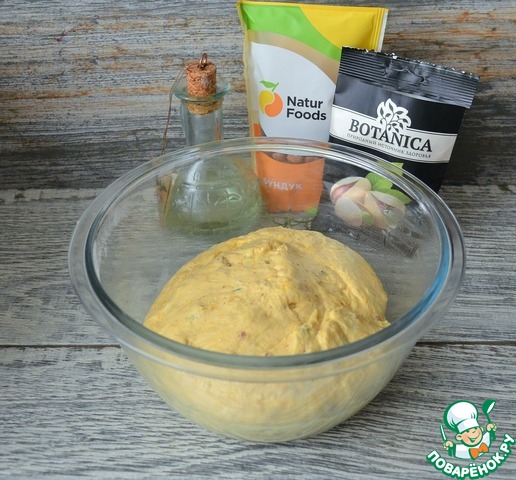 Сформовать колобок, переложить в смазанную растительным маслом миску, накрыть и убрать на 1 час в тёплое место, без сквозняков.
