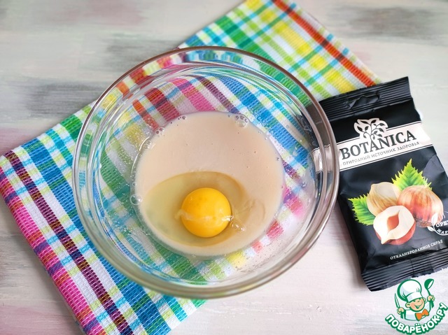 В миску добавить теплое молоко (5 ст. ложек), добавить дрожжи (5 гр.), добавить сахар (40 гр.), Смесь взбить вилочкой. Далее добавить яйцо (1 шт. - мелкое) Смесь взбить.