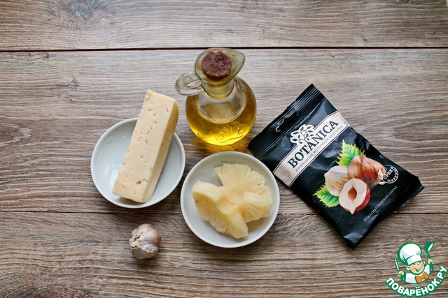 Ингредиенты для «Рыбные рулетики с ананасом и орехами»:
