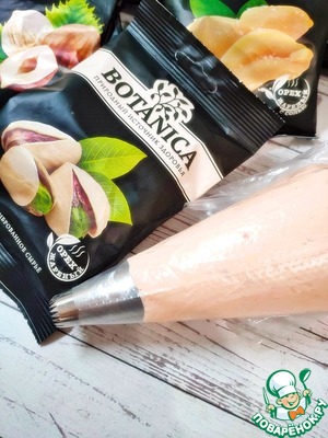 Выложите крем в кондитерский мешок с фигурной насадкой для удобства отсаживания крема. Если у вас нет мешка и насадки, это можно будет сделать просто ложкой).