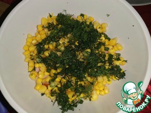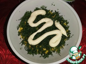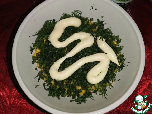 Затем мелко нарезанный укроп. Оставить небольшую веточку для украшения.