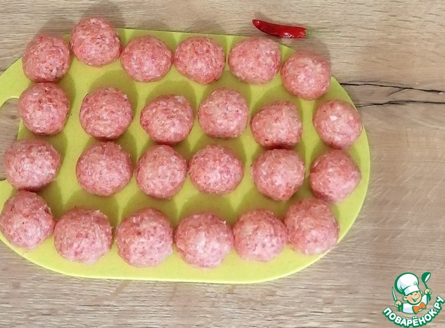 Хорошо вымесить и сформировать фрикадельки, размером немного больше грецкого ореха.