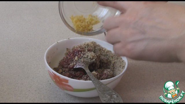 К измельченным орехам добавим мед или джем. Добавляйте по 1 ст л, сначала одну, потом, если понадобится, ещё одну. Начинка должна: получится густой.