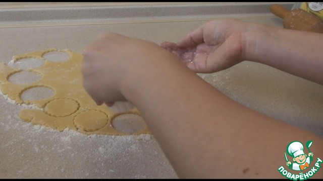 Раскатываем тесто толщиной 3-4 мм, любой вырубкой формируем печенье и выкладываем на противень застеленный пергаментом.