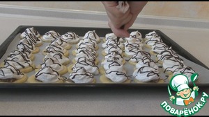 Сверху с помощью кондитерского мешка выдавливаем безе формируя шапочку. Отправляем в разогретую до 170 градусов духовку, запекаем 15-20 минут.