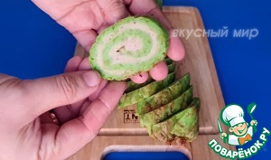 Достаем омлет и сразу заворачиваем в рулет, оставляем 10мин.