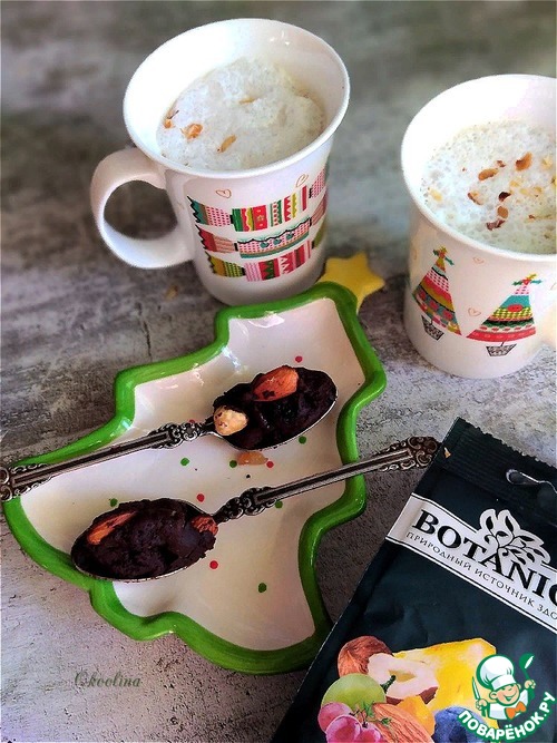 Напиток подаём горячим. Несмотря на то, что он всё-таки густой, его можно пить через коктейльную трубочку. Окунаем застывший шоколад в горячий напиток и запиваем им. Наслаждаемся процессом растворения шоколада. Вкусно и полезно!