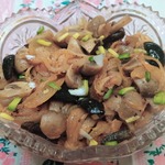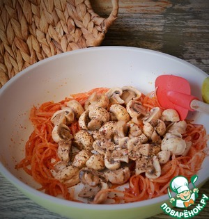 Лук нарезать перьями. Обжарить на растительном масле до прозрачности, огонь ниже среднего. К луку добавить паприку, перемешать и сразу же убрать с огня. Этим лайхфаком я пользуюсь давно при приготовлении продуктов невзрачных на цвет - серые грибы, белая капуста и т. п.. Ведь аппетитность блюда напрямую зависит от цвета.