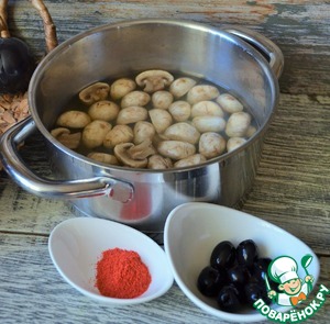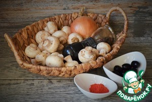 Ингредиенты для «Маринованные шампиньоны с маслинами»:
