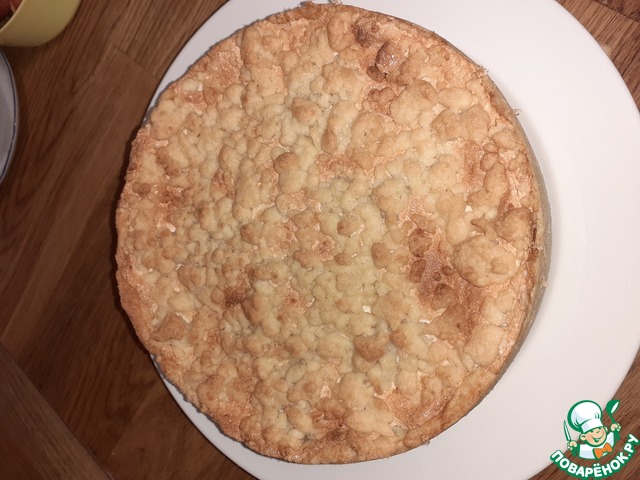 Дно разъёмной формы (d- 18 см) застелите бумагой для выпечки. Выложите тесто. Распределите его по форме, создавая бортики. Сделайте проколы вилкой и отправьте в холодильник. Если на кухне у вас тепло, крошку тоже поставьте в холодильник.