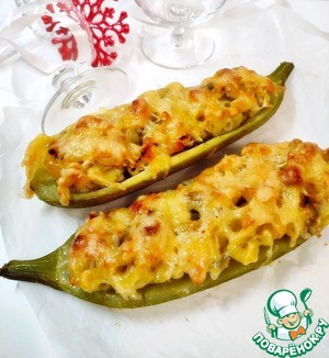 На сайте много рецептов с кабачками, есть и фаршированные. Предлагаю ещё один интересный рецепт, который я впервые увидела у Наташи Оконешниковой. Правда, я внесла свои небольшие изменения, но он точно заслуживает внимания, потому что это - просто, вкусно, сытно.