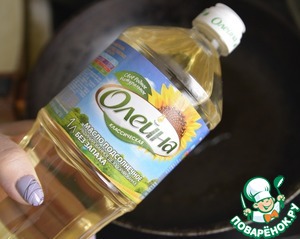 • Сковороду нагреваем, наливаем масло, у меня подсолнечное от "Олейна".