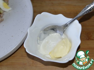 • Редьку смываем, отжимаем, кладём сверху Лука.