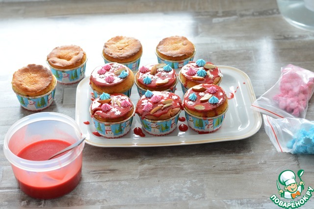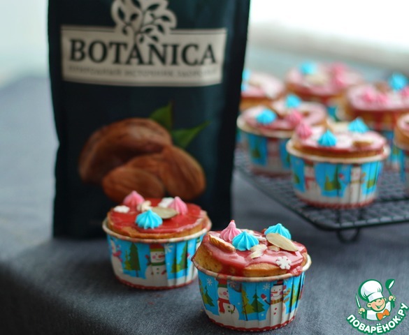 Остывшие кексы украсьте на свой вкус. Я использовала готовую глазурь, рубленый миндаль и кондитерские посыпки.