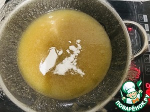 На плиту ставим кастрюлю с водой, на кастрюлю чашу с мёдом, сахаром и маслом. Нагреваем, периодически помешивая.