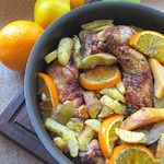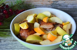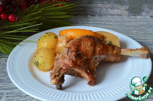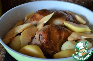 Окорочка куриные с фруктами и картофелем