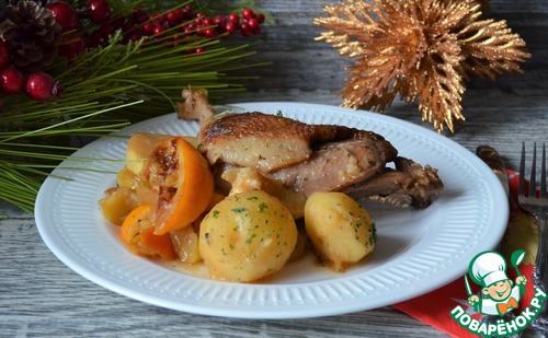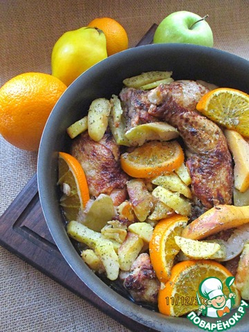 Рецепт «Окорочка куриные с фруктами и картофелем»: