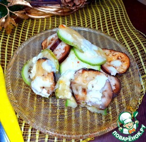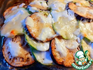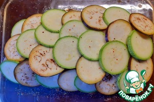 Кабачок и баклажан порезать тонкими кружочками (по 2-3мм толщиной)