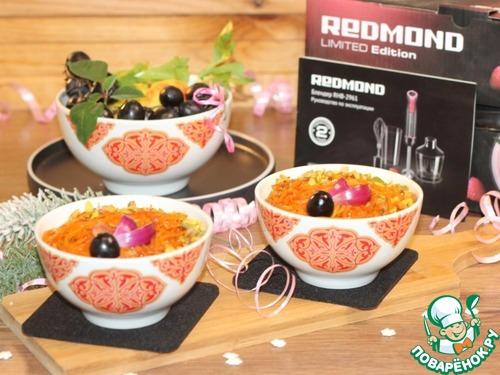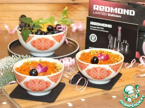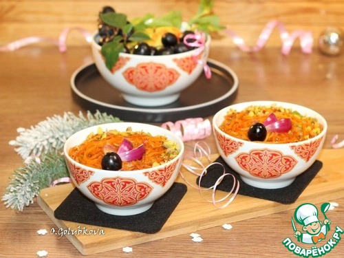 13. Сверху выкладываем карамелизированную морковь и отправляем блюдо в холодильник на 1 час или до подачи на стол.