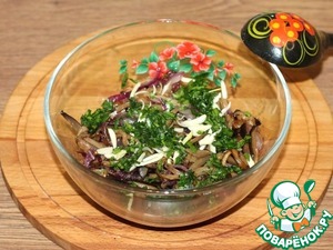 8. Выложить овощи в миску, добавить чеснок, зелень и перемешать.