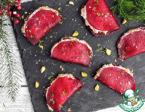 Рецепт «Свекольные дольки с сыром и фисташками»: