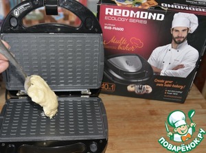 Вафельницу нагреваем и на панель кладём полную ложку теста, закрываем, выпекаем до золотистости 3-4 минуты.