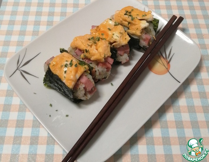 Под таким названием я увидела этот рецепт у корейского блогера Хару. Этакая разновидность пибимбапа (корейские суши) Очень интересные на вкус и лёгкие в приготовлении.