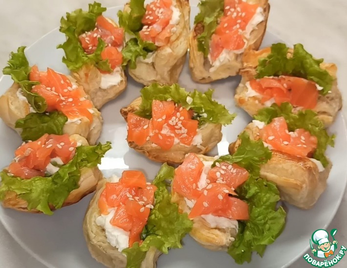 Рецепт «Лодочки из слоёного теста с красной рыбой»: