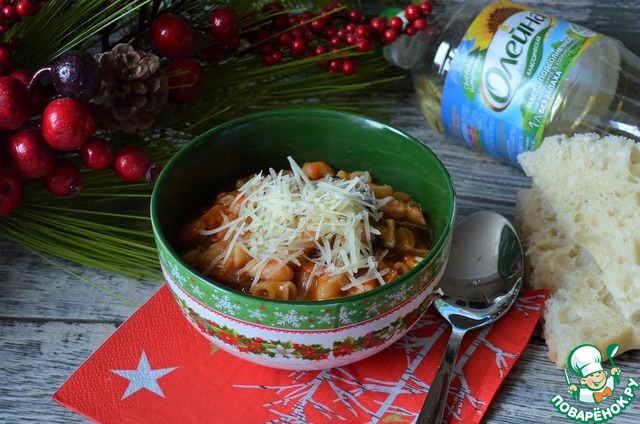 Сытное, яркое по вкусу и на вид итальянское блюдо. Суп или второе - выбирать Вам, ибо в Италии подают по-разному. Мой вариант - второе, горячее. Готовится быстро, поэтому пригодится хозяюшкам, когда весёлая семья возвращается с зимней прогулки, даже дети будут кушать с удовольствием. Да и гостям подать не стыдно.