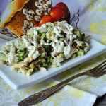 Салат сытный и плотный, сюда так и просится огурчик или сладкий перец, тут сами смотрите. Я салат приготовила по рецепту без дополнений.