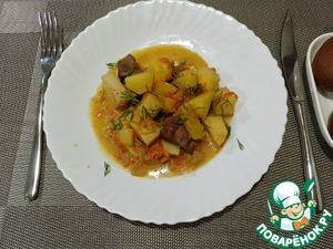 Добавляем в чашу воду, картофель, сметану и специи — Режим «Тушение» 45 минут.