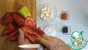 1. Перцы помыть, разрезать на две части и обязательно удалить семена, плохие и подпорченные части.