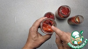 Перцы в этом случае в банку укладывать нужно поплотнее, а банка обязательно должна быть хотя бы тёплой.