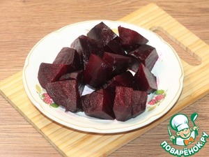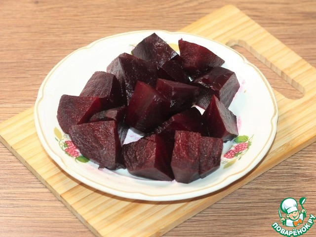 1. Свеклу отвариваем, очищаем и нарезаем дольками.