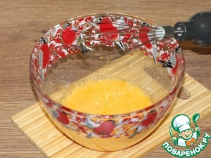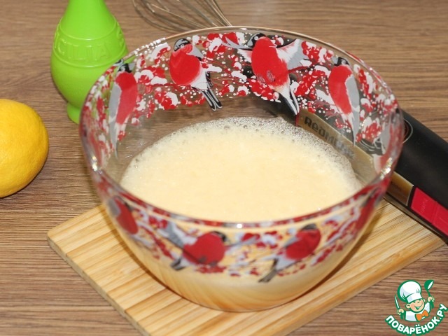 4. В яичную смесь добавляем лимонный сок и взбиваем до пышной пены. Масса немного посветлеет. Я попробовала с соком лайма.