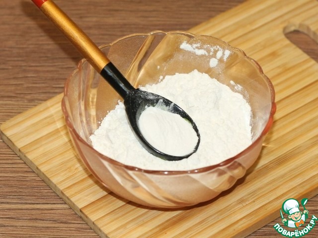 6. Муку смешиваем с разрыхлителем.