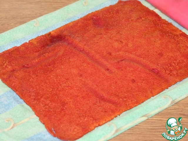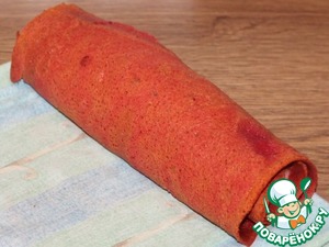 16. Сворачиваем корж в рулет.