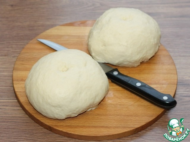 7. Делим тесто на 2 части. Одну часть кладем в прозрачный пакет со второй - формируем булочки.