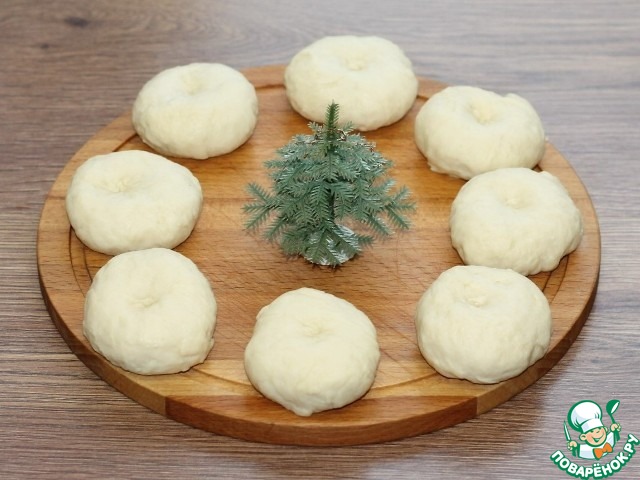 8. Тесто делим на 8 частей и скатываем в шарики.