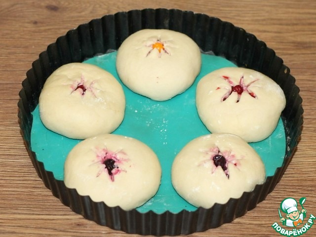 Рецепт: Булочки на кефире с фруктовой начинкой Рецепт: Булочки на кефире с фруктовой начинкой