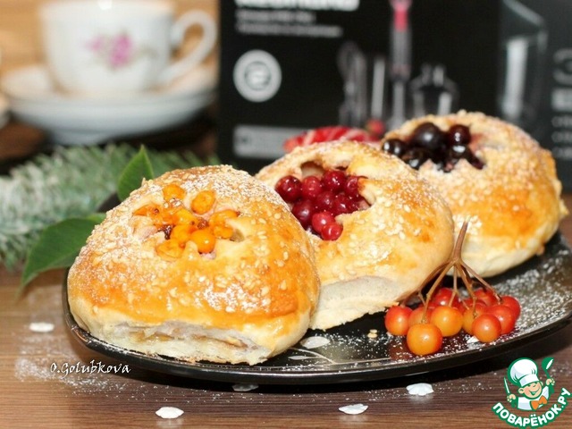 Сладкие, аппетитные и ароматные булочки на кефире с творожной начинкой и ягодами. А если использовать разные ягоды, то каждый раз будет получаться новый вкус. Ягода замороженная: брусника, смородина и облепиха.