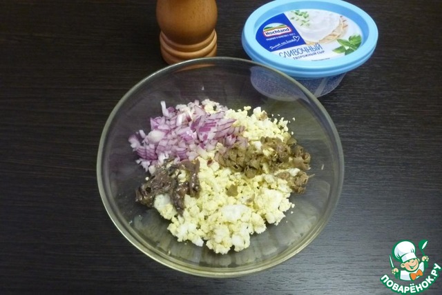 - Сыр творожный (ТМ Hochland) — 2 ст. л.
