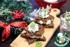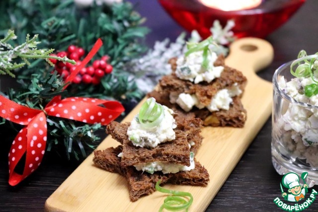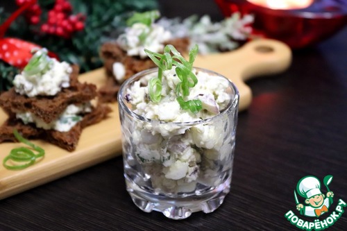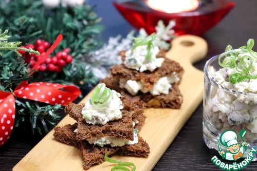 Этот салат не очень похож на наши салаты. Тут все мелко рубится и заправляется творожным сыром. В нашем понимании это скорее закуска. Поэтому подавать её можно на крекерах, поджаренных кусочках хлеба или в тарталетках. На праздничный стол очень неплохо получается.