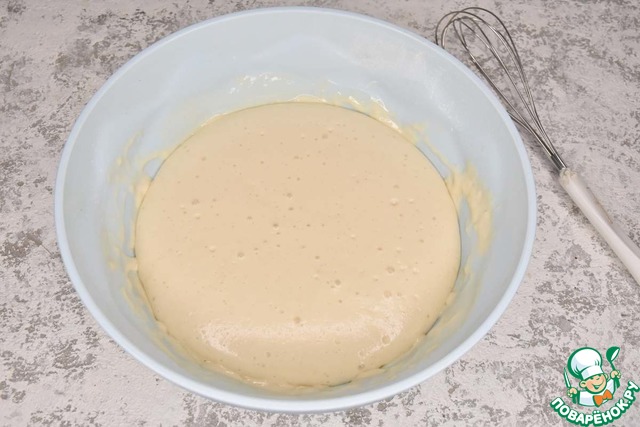 Для опары в миску налить теплое молоко, растворить в нем сахар, свежие дрожжи. Перемешать до полного их растворения и всыпать просеянную муку. Перемешать и оставить опару в теплом месте минут на 30–40 для подъема. Готовая опара хорошо увеличится в объеме и будет вся пронизана пузырьками.