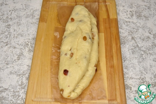 Заготовки для штолленов скатать, разложить на доске и прикрыть салфеткой или пищевой пленкой, чтобы не заветрились.