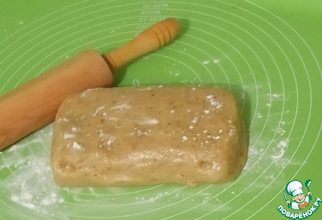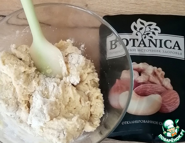 Быстрыми движениями замесите тесто, оно должно собраться в ком, быть мягким, но не липнуть к рукам.