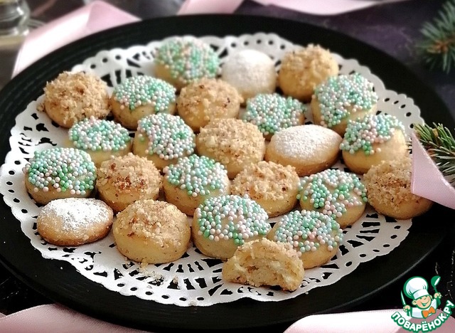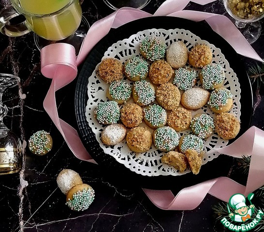 Приготовить это ореховое печенье совсем не сложно. В праздничном оформлении печенья могут принять участие ваши дети /внуки. Ведь встреча Нового Года семейный праздник. Вот и приготовление этого угощения можно устроить всей семьёй. Печенье маленькое - с пуговицу, ореховое, с лёгким лимонным привкусом, нежное, хрупкое, ароматное и тает во рту. Готовьте, радуйте близких.